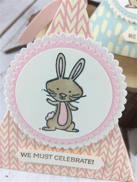 Using the big shot and the 2 1/4" scallop framelit cut out powder pink/soft sky card stock.