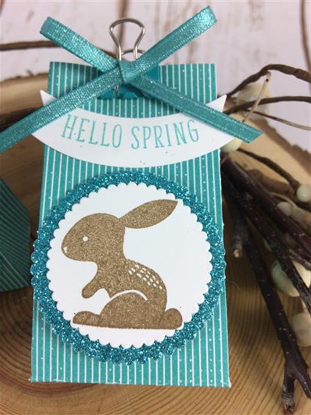 Tie a ribbon using the bermuda bay Sale-a-bration ribbon and adhere to clip with a glue dot.