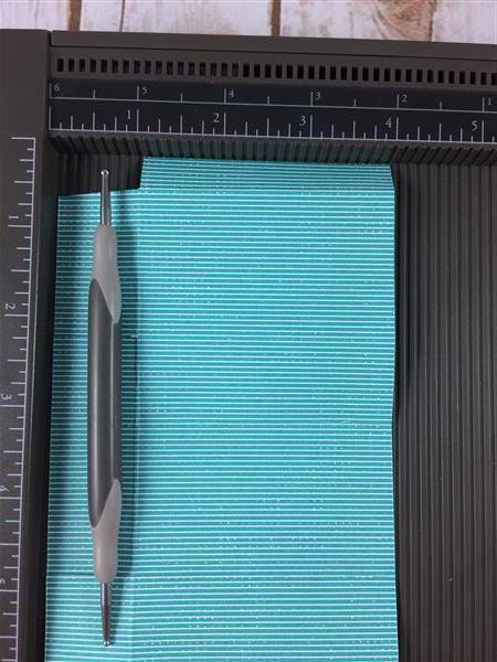 Cut out Myths & Magic glimmer paper (bermude bay) using larger scallop layering circle.