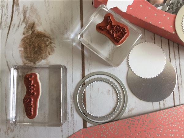 Stamp bunny from A Good Day stamp set using memento ink onto whisper white cardstock. Cut out with 1 3/8" scallop punch.