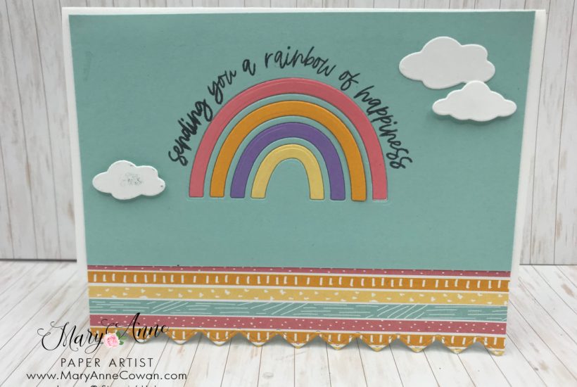 These cards just make me smile! It’s fun to be creating with some bright and happy colours. The Rainbow of Happiness products will be available to customers beginning January 4th in the new January – June Mini Catalogue. These products are available beginning January 4th for customers! This adorable paper is a Sale-A-Bration offering and will be available FREE…