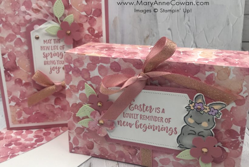 Create this adorable card and matching gift box using the Springtime Joy stamp set from Stampin’ Up. The Designer Series Paper is Hydrangea Hill- one of my favourites! Card Measurements: Roccoco Rose cardstock 8 1/2″ x 5 1/2″ scored at 4 1/4″ Basic White cardstock 4 x 5 1/4″ Hydrangea Hill Designer Series Paper 3 3/4″ x 5″ Stitched Nested…