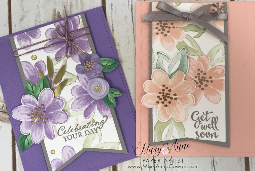 MAKE A CARD ~ SEND A CARD The Gorgeous Posies stamp set features beautiful water coloured flowers. The stamps make it super easy to get a beautiful image every time! I have used the masking technique as well to add the leaves to the flowers! This card features Petal Pink cardstock and granite gray accents. I have fussy cut…