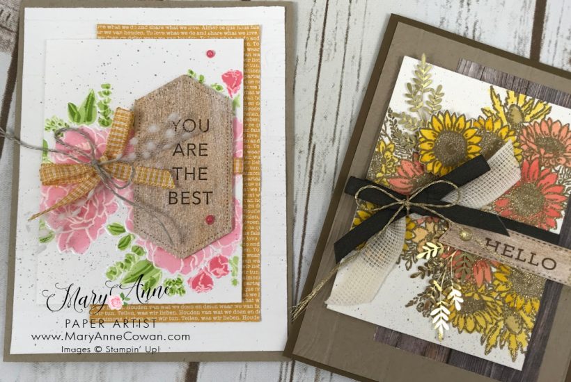 These cards were CASED from Tammy Wilson who is part of the Stampin’ Up Artisan Design Team. I fell in love with the pink flowered one- so I thought I’d give it a try. It inspired me to try to make one using the sunflowers from the Jar of Flowers Bundle- I like how it turned out. Measurements: Card Base-…