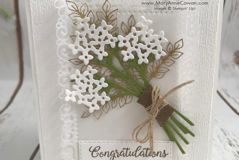 The upcoming Stampin’ Up Annual Catalogue will be released on June 3rd. There are so many beautiful new products- but one that has really has me excited is the Forever Gold Specialty Designer Series Paper. It is a unique pack of gold foil laser cut card fronts and layers- it makes card making so easy and elegant. I have…