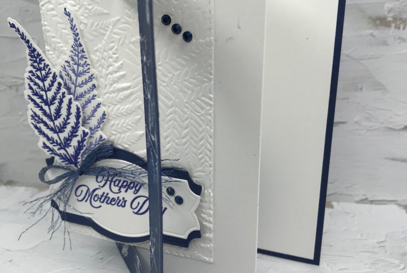The Sun Prints Suite of products from Stampin’ Up will take your breath away! The Designer Series Paper is truly magical! Here I have created a fun fold card using the Sun Prints Designer Series Paper- it really is easier than it looks! Measurements: Night of Navy Cardstock 8 1/2″ x 5 1/2″ White Cardstock 8″ x 5 1/4″ scored…
